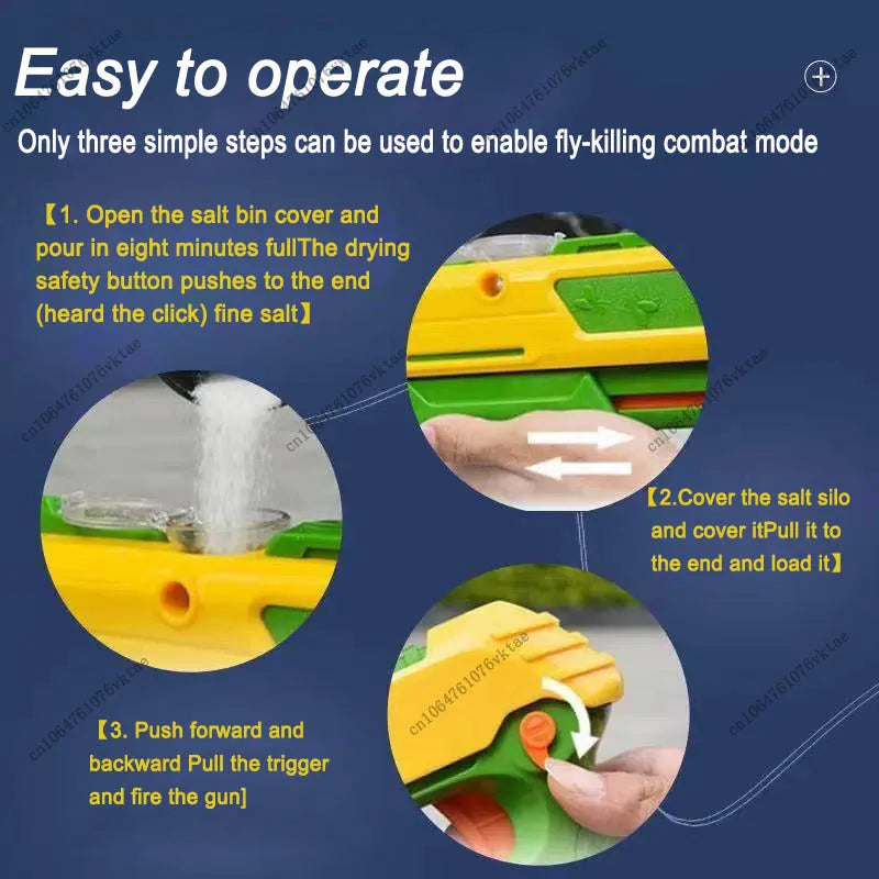 Experience the latest Fly and Mosquito Gun 3.0, the ultimate salt shotgun toy designed for both fun and function! This upgraded model lets you shoot flies, mosquitoes, and small insects using ordinary table salt — no chemicals, no mess, just pure satisfaction.